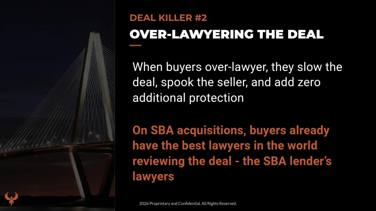On SBA acquisitions, buyers already have the best lawyers in the world reviewing the deal — the SBA lender’s lawyers.